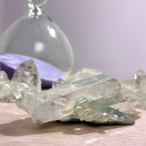 Il Quarzo Angel Aura viene creato fondendo platino, argento o oro sul Quarzo Ialino per creare un’energia spirituale di grande supporto e di squisita purezza. L’iridescenza brilla come le ali degli angeli, da cui il nome, e mette in connessione con gli angeli custodi e la guida angelica. Questo cristallo facilita il ricordo delle lezioni dell’anima dalle incarnazioni passate e la sintonia con lo scopo dell’anima nella vita presente. Libera i blocchi dal chakra della gola e incoraggia la comunicazione amorevole.