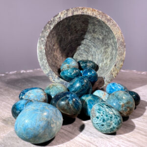 L’apatite è una pietra potente per la pulizia e la guarigione dei chakra del cuore e della gola e servono come centri di verità, saggezza e amore. Tieni questa gemma sui tuoi chakra durante la meditazione, lasciando che ti guidi verso le verità che desideri condividere con il mondo. L’apatite aiuta anche famiglie, amici e coppie a stabilire un ambiente armonioso di apertura e onestà. Questa gemma è una pietra particolarmente adatta per scrittori e oratori pubblici con cui lavorare, chiunque desideri rafforzare le proprie capacità comunicative. L’apatite blu e/o verde è anche una pietra ideale da tenere nei tuoi spazi creativi e lavorativi.