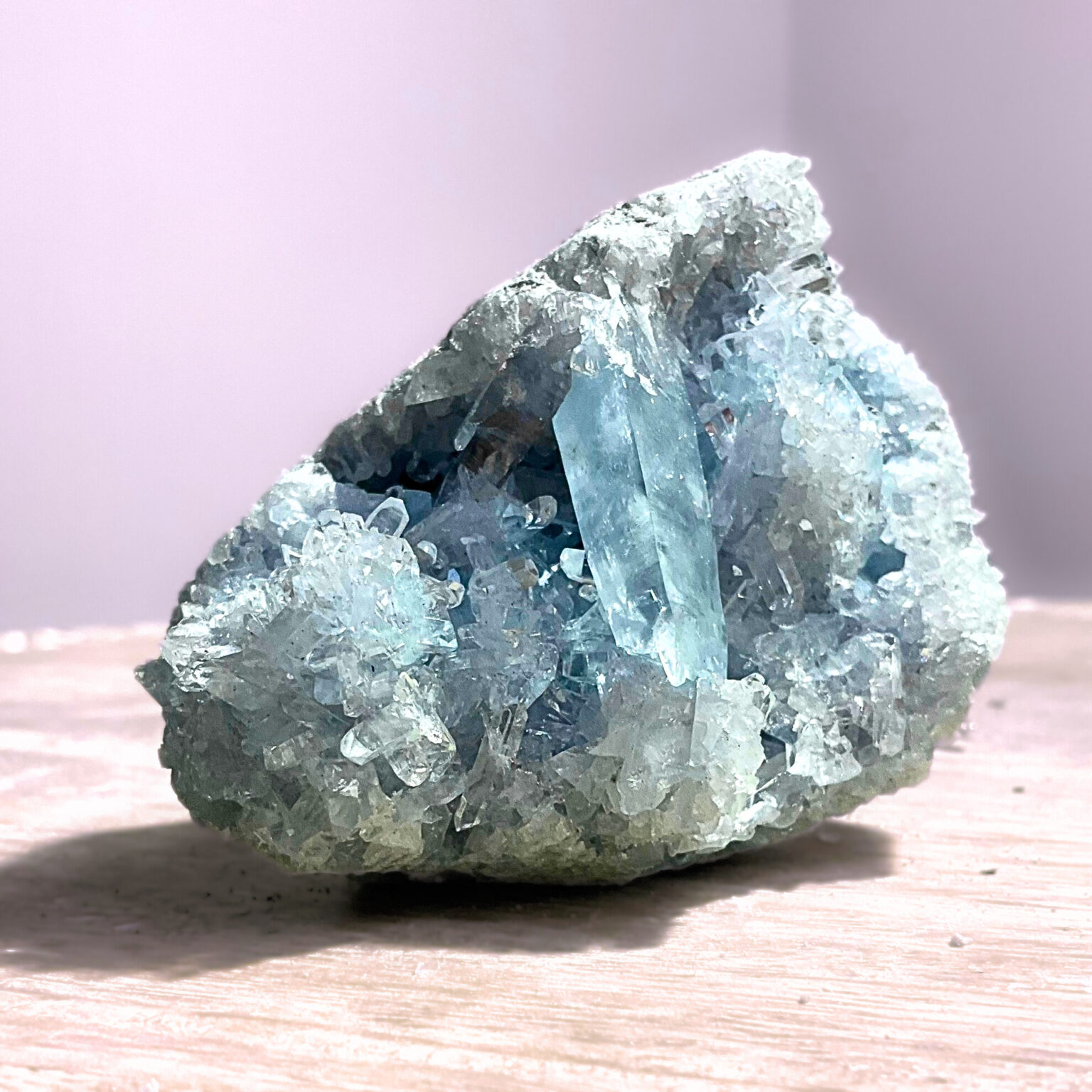 Pietra ad alta vibrazione e maestra per la New Age, la celestina porta energia divina nell’ambiente e stimola lo sviluppo spirituale e le capacità metafisiche. Sottolinea la fiducia nell’infinita saggezza del divino. Guarendo l’aura, promuove la purezza del cuore e mantiene un’atmosfera armoniosa nei momenti di stress. La celestina aiuta le relazioni disfunzionali, aprendo uno spazio per la negoziazione e sollecitando una maggiore apertura a nuove esperienze. Con il suo effetto calmante, la celestina raffredda le emozioni infuocate e armonizza l’intelletto con gli istinti, promuovendo l’equilibrio mentale. Fornisce un eccellente supporto quando si parla di fronte a grandi folle.