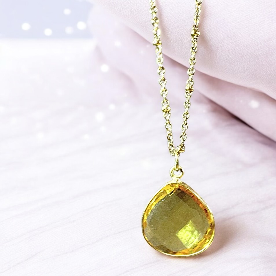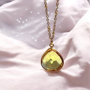 Questa collana è realizzata con Quarzo Citrino, una pietra che attrae abbondanza e gioia.
