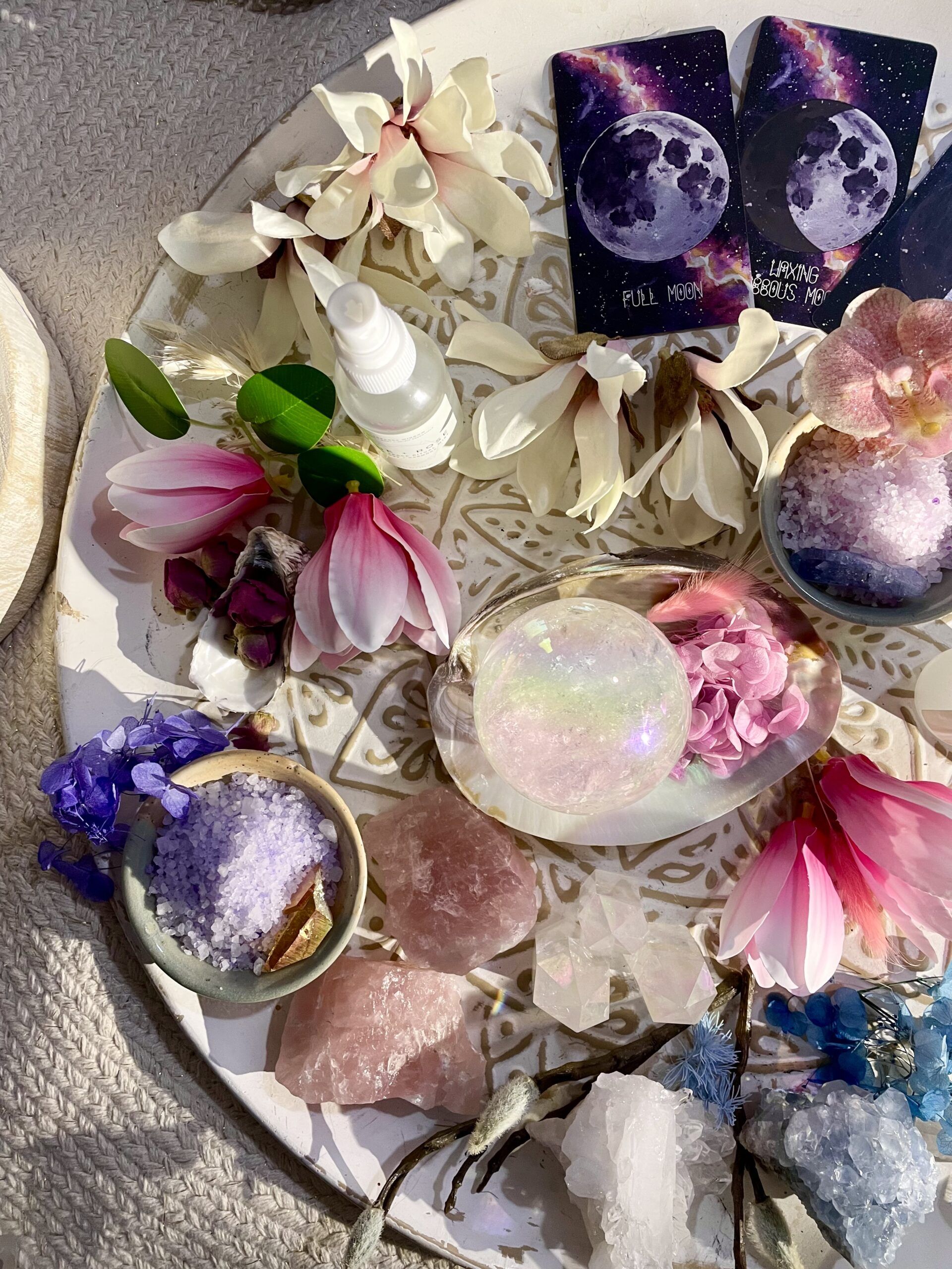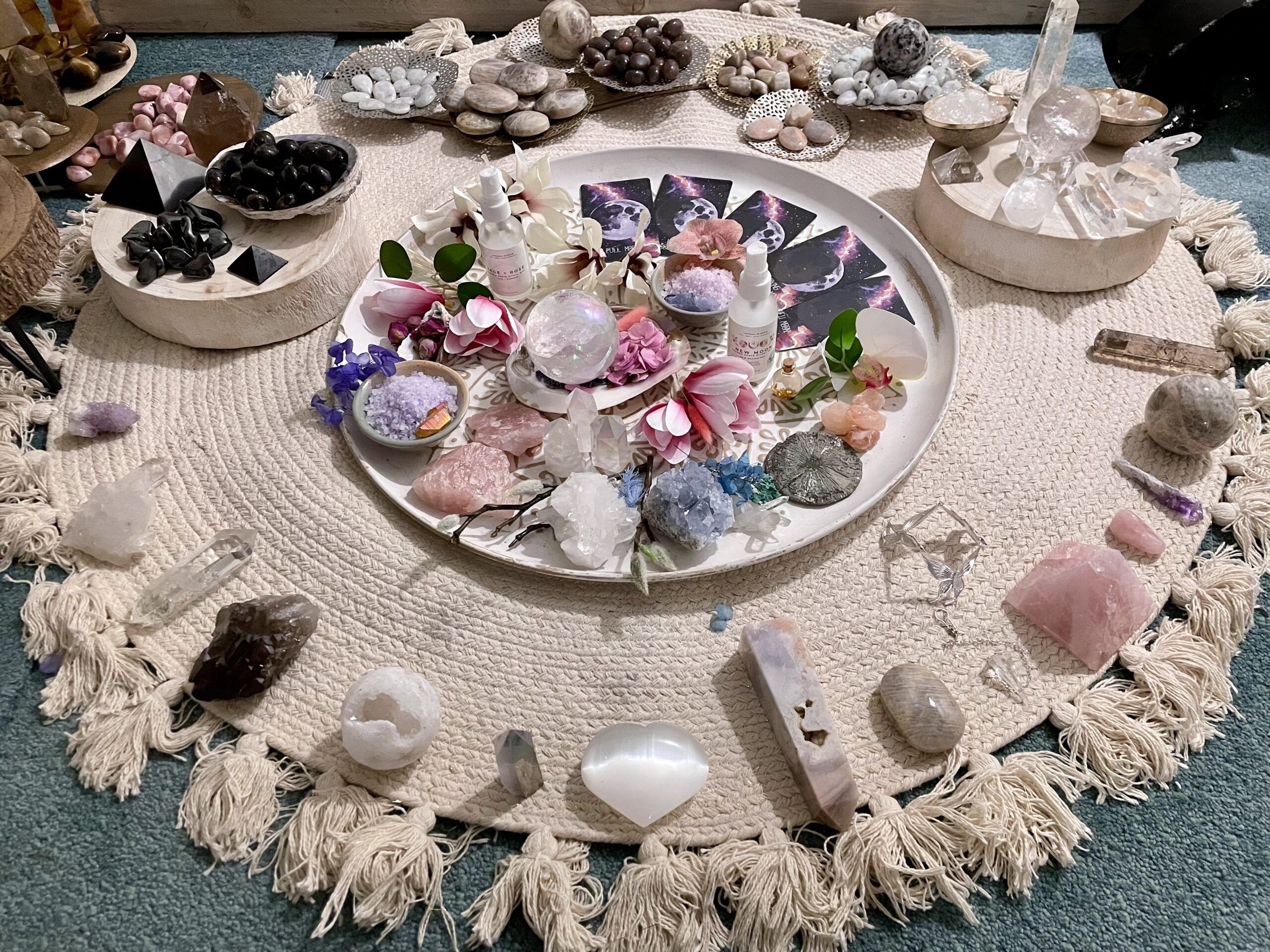 Un per-Corso esperienziale ed esplorativo sul mondo dei cristalli applicati alle fasi lunari , il femminino sacro e rituali antichi e moderni .
