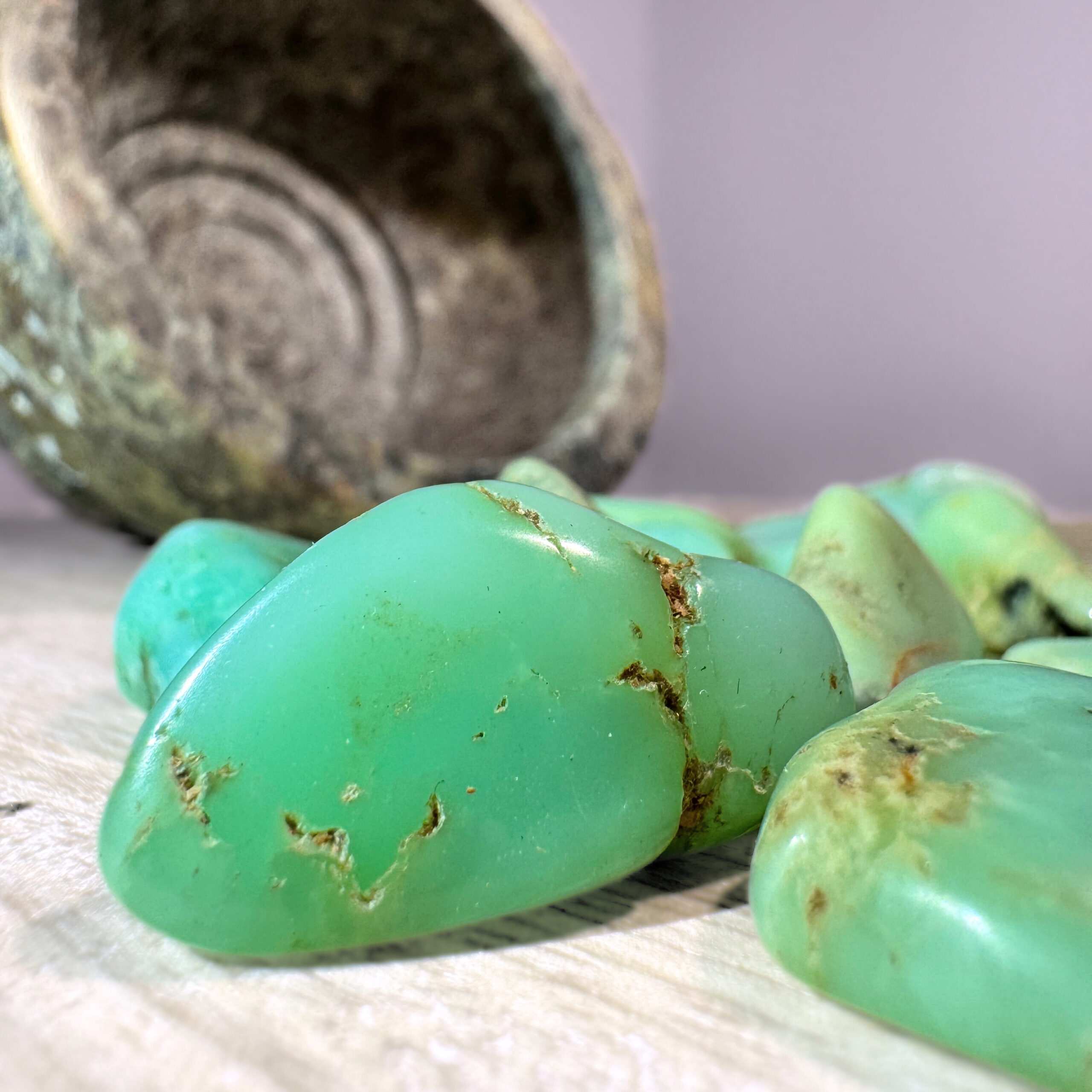 Non importa quanto profonda sia la tua ombra, il crisoprasio ti aiuterà a illuminarla in un modo che incoraggia la speranza e l’integrazione aprendo il Chakra del Cuore all’amore divino e all’abbondanza. Aiuta ad alleviare i sentimenti di isolamento, dissociazione e invidia, portando un senso di connessione al collettivo. Il crisoprasio aiuta ad alleviare le sensazioni di Inferiorità o di Superiorità con la consapevolezza che tutti noi abbiamo doni unici che possiamo offrire all’umanità. Il crisoprasio può anche essere utilizzato per rompere i modelli intergenerazionali di abuso e trauma prima che vengano trasmessi alle generazioni future. Ti aiuta anche a comprendere le ragioni karmiche o delle vite passate alla base di questi cicli in qualsiasi relazione.