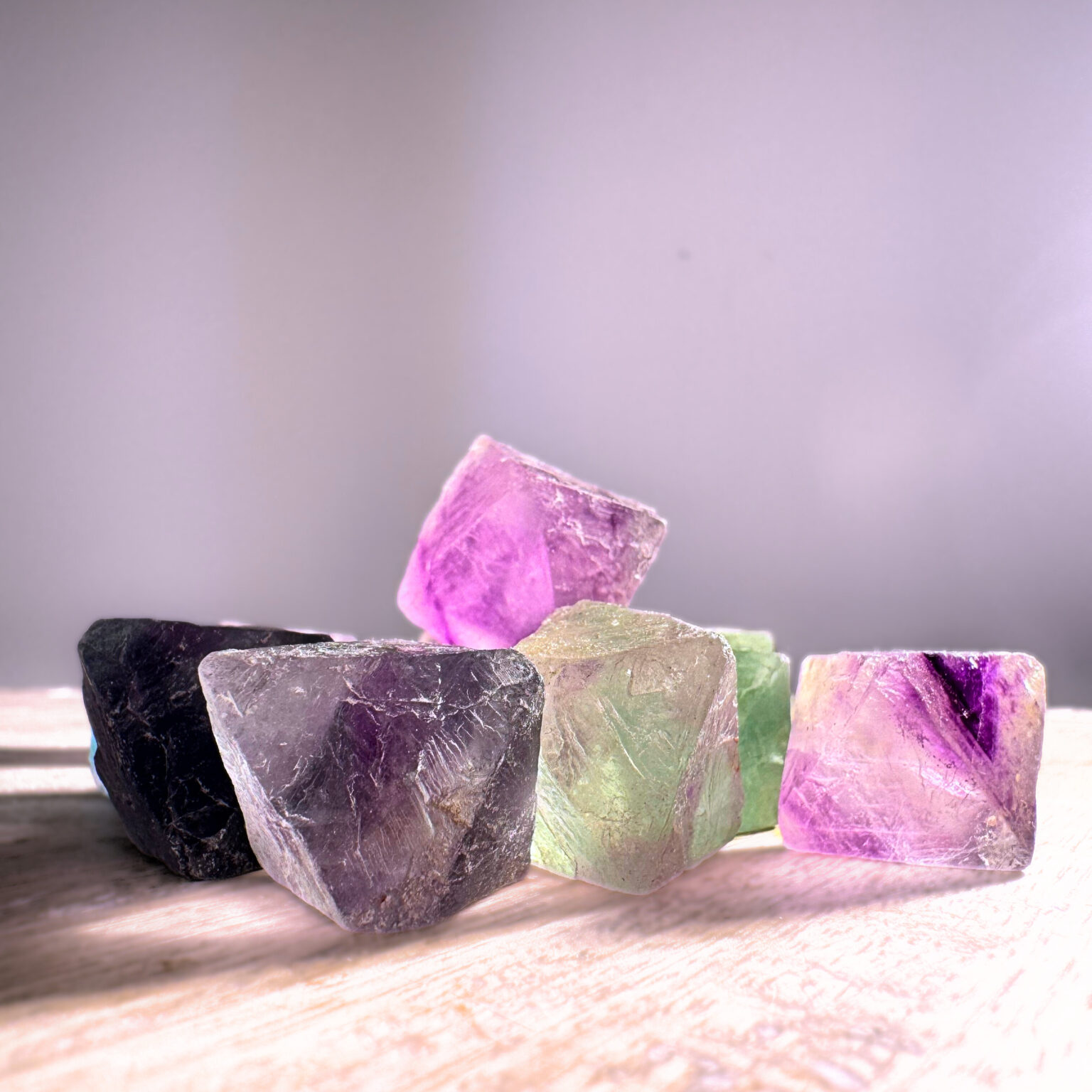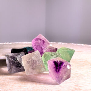 I cristalli di fluorite si sono formati per la prima volta circa 200 milioni di anni fa, come risultato di acqua calda, fluoro e altri minerali che si muovevano attraverso le crepe della terra e interagivano con il substrato roccioso calcareo ricco di calcio. La prima estrazione di fluorite ebbe luogo nel 1842 in Illinois. La pietra era originariamente utilizzata per aiutare a rimuovere le impurità durante la fusione dei metalli ed era anche incorporata in prodotti come lenti a contatto e dentifricio (sotto forma di fluoro). La fluorite è una gemma di potenziamento mentale e chiarezza; organizza i pensieri sparsi, rafforza le capacità della mente, approfondisce i poteri psichici e aiuta a prendere decisioni. Purifica anche il campo energetico, spazzando via la nebbia mentale, la confusione e qualsiasi paura del futuro.
