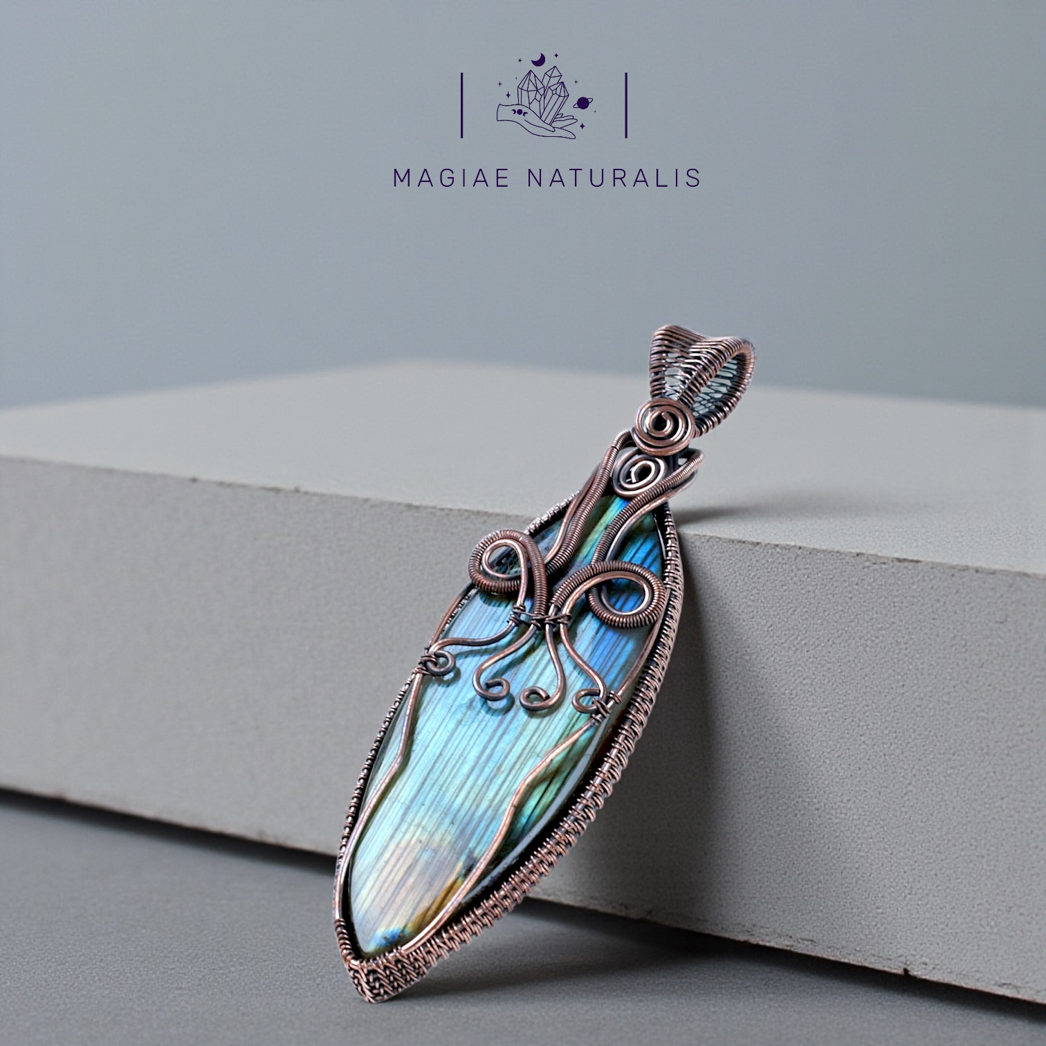 Pendente Artigianale con pietra Labradorite , rame nativo