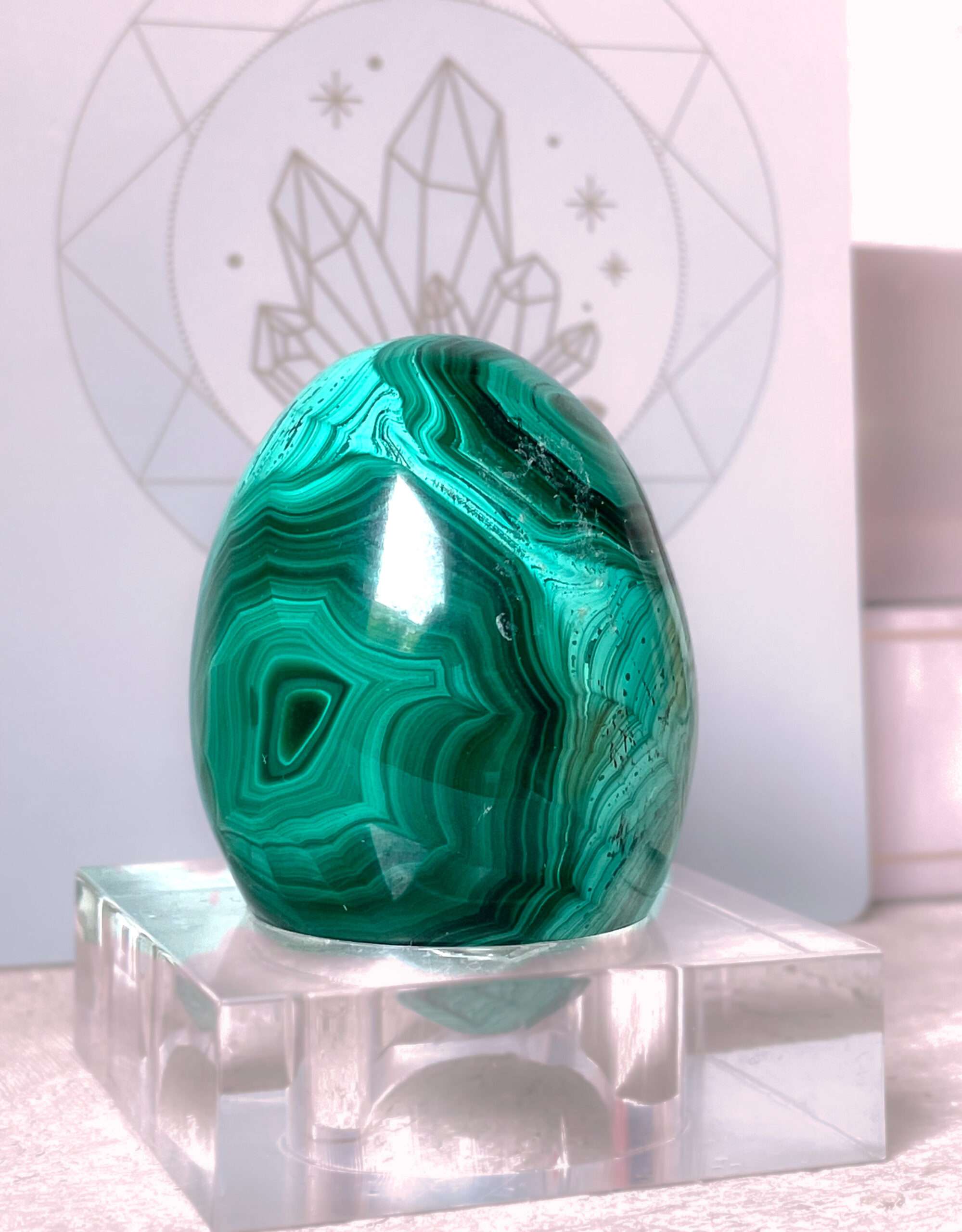 La malachite è la pietra più potente per la guarigione femminile. È una centrale elettrica del Chakra del Cuore che aiuta l’apparato riproduttivo femminile e offre supporto durante le fasi di concepimento, gestazione e parto. Conosciuta come Pietra Doula, la sua antica medicina fa magie non solo per il parto ma per qualsiasi problema femminile che coinvolga l’apparato riproduttivo. Si dice che sia particolarmente efficace nell’alleviare i crampi mestruali quando posizionata sul Chakra Sacrale o alla base della colonna vertebrale. È una delle poche pietre preziose note ai moderni praticanti metafisici ad avere poteri specifici per questo. La malachite è un purificatore dell’anima.