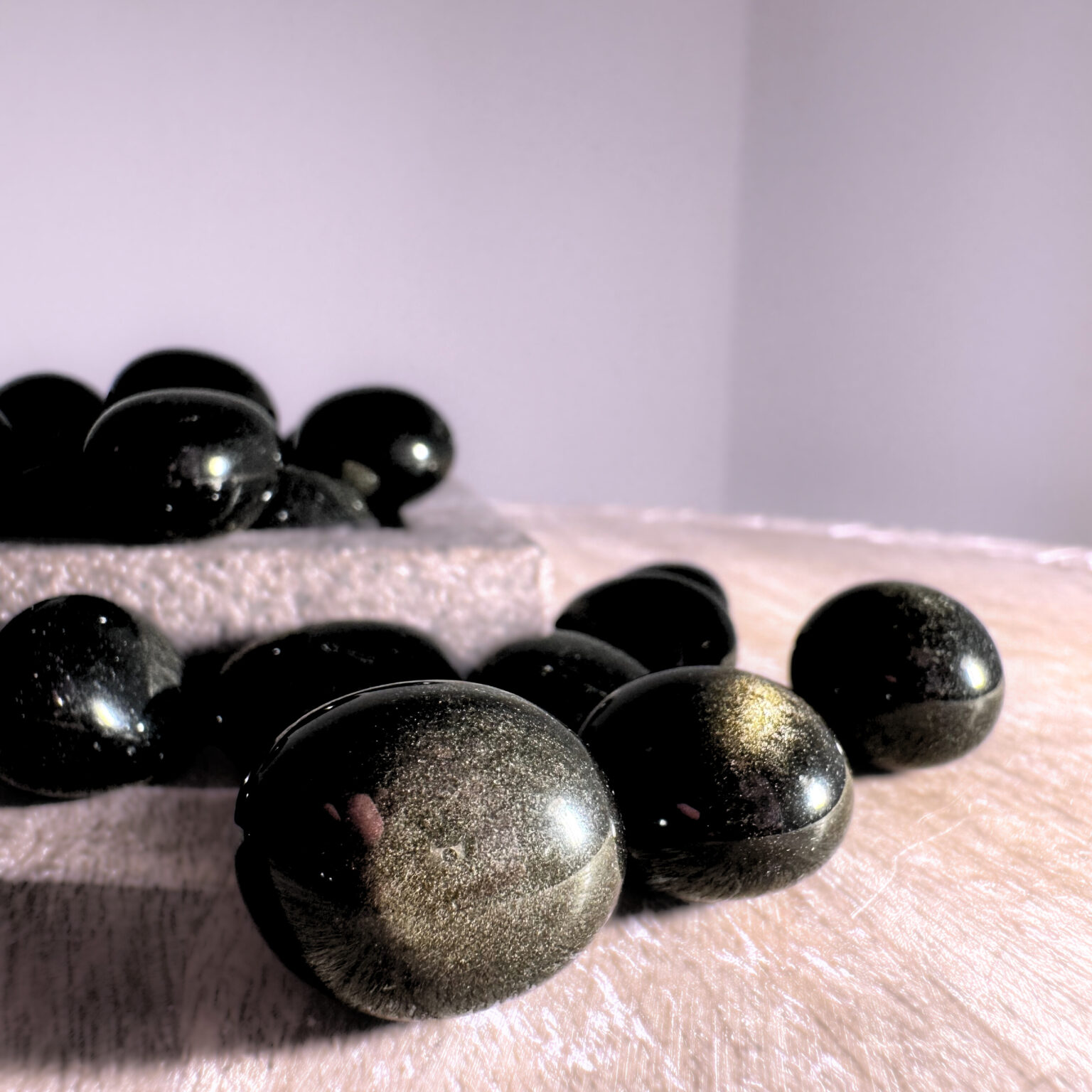 L’ossidiana dorata รจ una gemma perfetta da tenere in casa, poichรฉ mantiene radicata e protetta la frequenza del tuo spazio. Tienine un pezzo mentre viaggi o indossalo come gioiello per purificarti dalla negativitร e mantenere la tua vibrazione pura, alta e leggera. ร utile quando si esegue il lavoro sull’ombra e fornisce supporto durante i periodi di rilascio e trasformazione. Dona l’ossidiana dorata ai tuoi cari che attraversano periodi di cambiamento o sfida: trarranno grandi benefici dalla magia purificatrice di questa pietra.