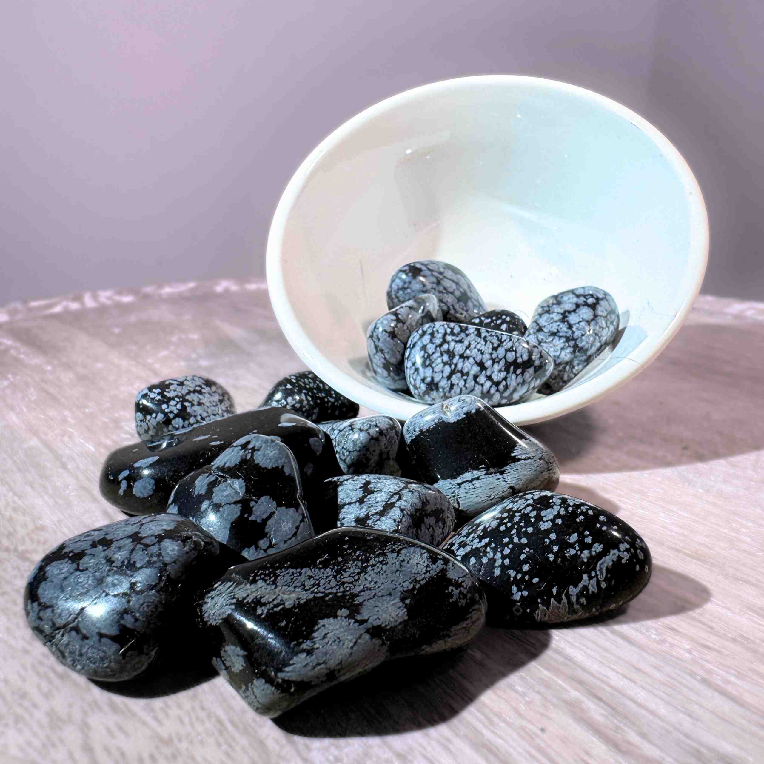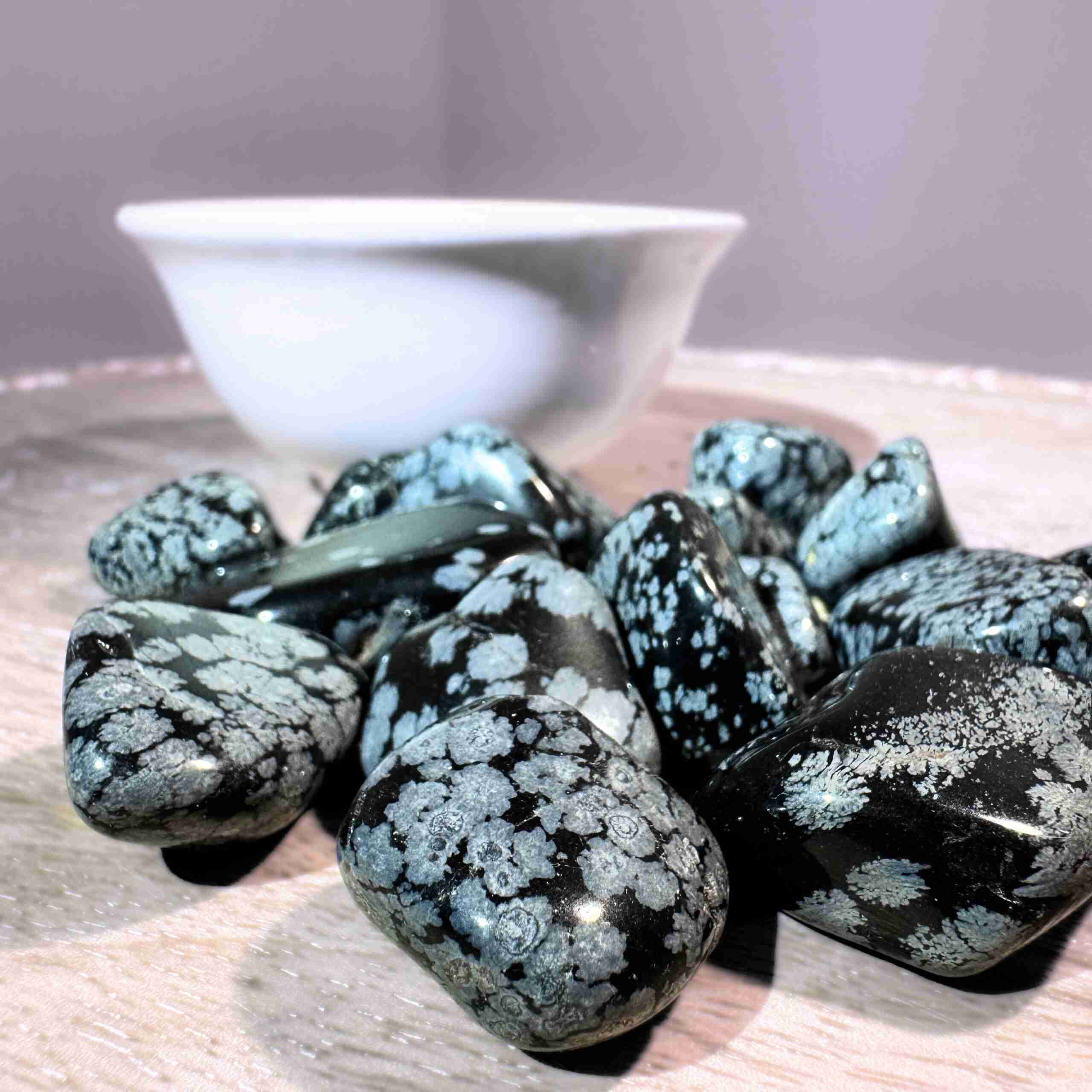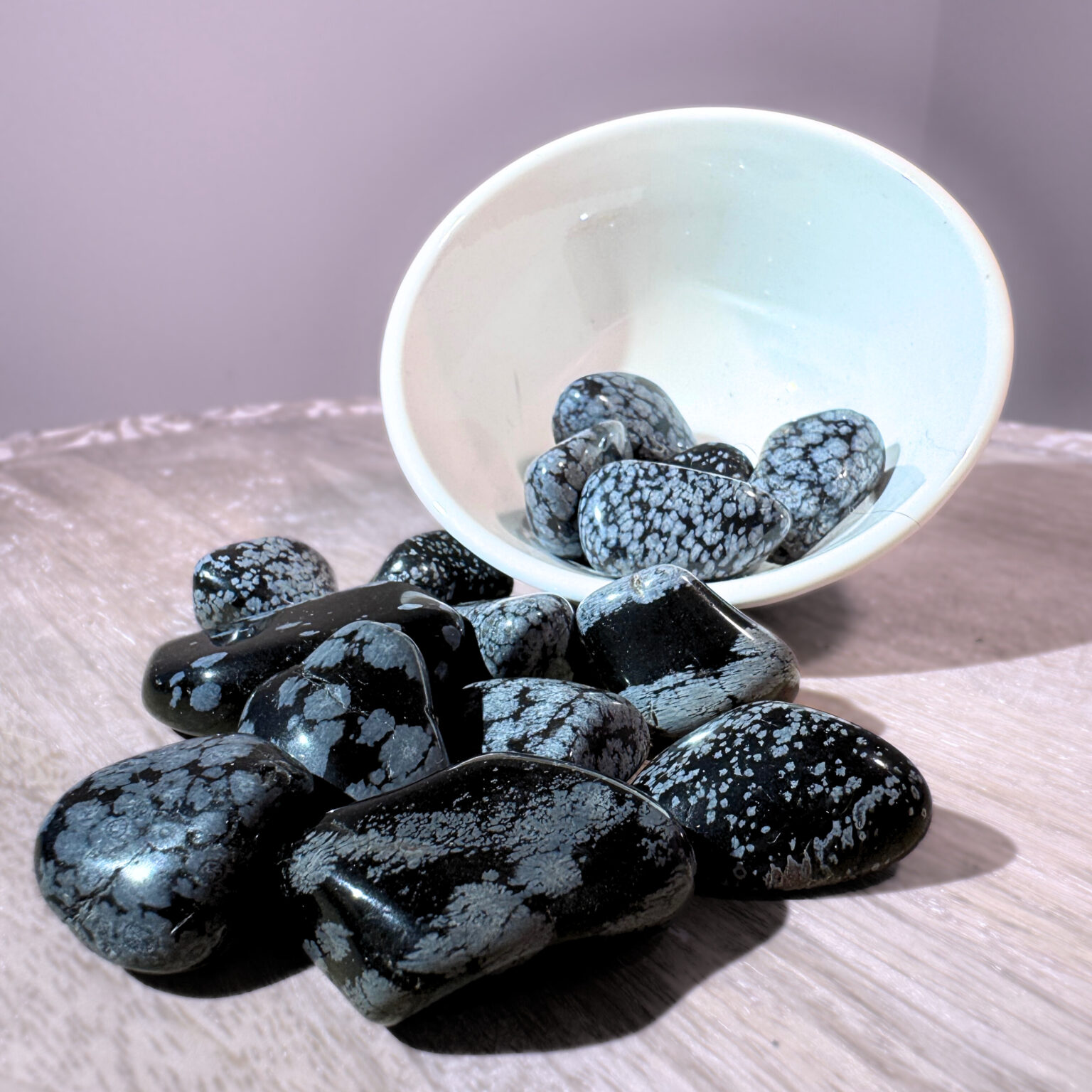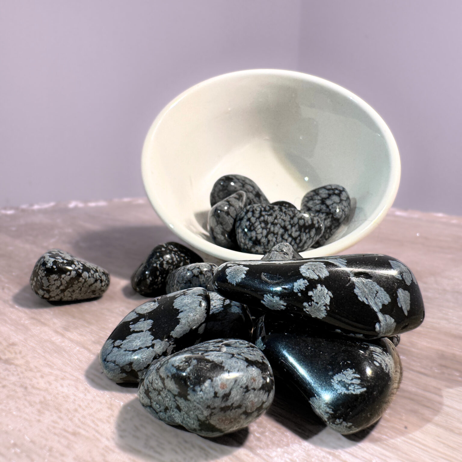 L’ossidiana fiocco di neve è una pietra potente da incorporare nel lavoro dell’ombra o nella regressione alle vite passate. Questa gemma è utile per rivelare vecchi schemi malsani e aprirti al cambiamento in modi che servono al tuo bene più alto. Tieni questa pietra in casa o ovunque desideri circondarti di vibrazioni stabilizzanti e protettive. Posizionala su qualsiasi area tesa del corpo che abbia bisogno di disintossicazione energetica e guarigione. L’ossidiana fiocco di neve è anche un dono meraviglioso, che porta la sua magia delicatamente protettiva a chiunque incontri. Questa gemma apre canali tra te e il mondo naturale, rendendola una compagna ideale per escursioni o meditazioni all’aperto.