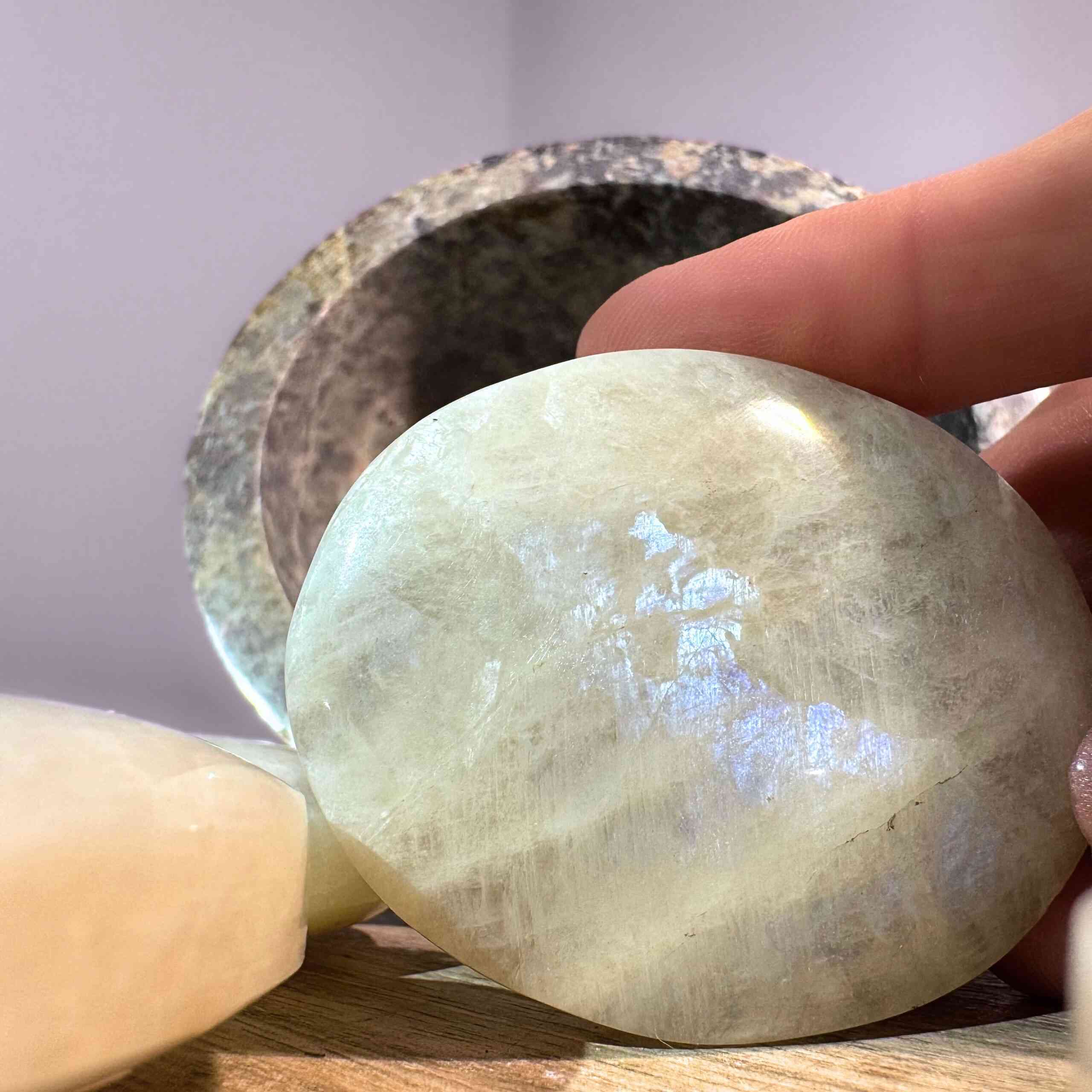 La pietra lunare arcobaleno è una gemma che cambia la vita, una pietra di rinascita e trasformazione. Questa pietra ti incoraggia a lavorare con le fasi lunari per onorare i tuoi cicli di espansione e rilascio. Sblocca doni psichici, facilita il sogno lucido e ti aiuta a canalizzare messaggi dall’esterno del nostro mondo di tempo e spazio. La pietra lunare arcobaleno garantisce anche l’accesso ai regni celesti, circondandoti nella luce dei tuoi angeli e del tuo spirito guida. Ti porta a liberarti di qualsiasi attaccamento negativo a cui potresti aggrapparti, aiutandoti a concentrarti solo su te stesso e sul tuo percorso. Promuove la pace interiore e incarna le energie della dea.