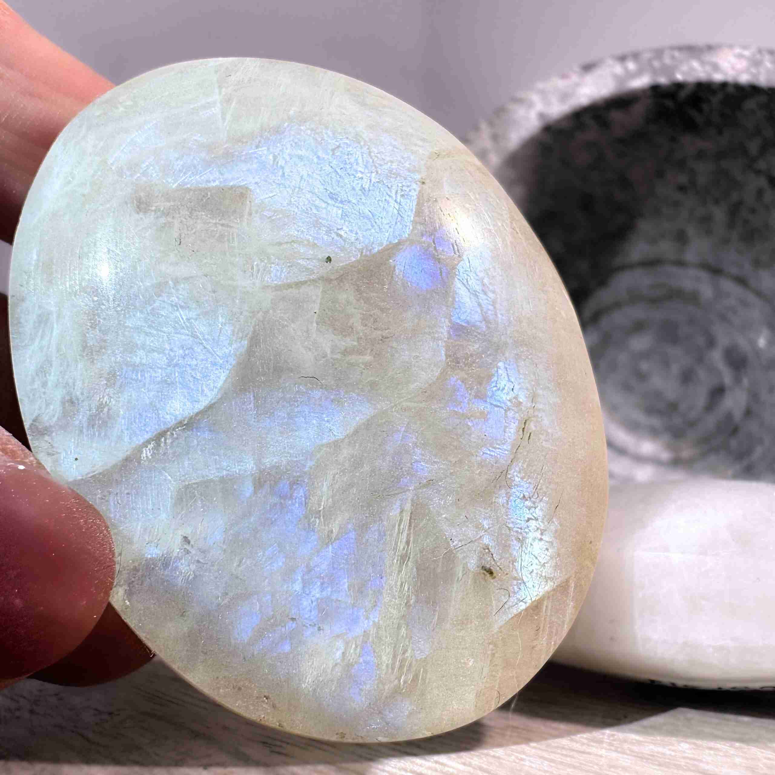 La pietra di luna rainbow è un potente alleato quando si lavora con l’energia della fase di luna piena, tieni la pietra nella tua mano durante la meditazione, o incorporala nel lavoro di guarigione durante il tuo rito lunare Posiziona la pietra di luna arcobaleno nella tua casa per invitare alte vibrazioni di felicità , gratitudine, guarigione emotiva e luce, la pietra di luna arcobaleno è anche uno strumento meraviglioso per purificare e illuminare l’aura. Falla volteggiare intorno al tuo corpo per stimolare il flusso positivo dell’energia della forza vitale, e per aumentare la tua frequenza personale e deviare la negatività .