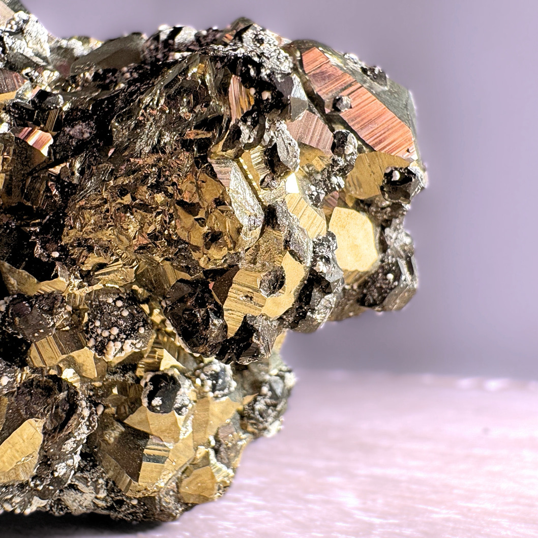 La pirite cubica espande e struttura le capacità mentali, bilanciando l’istinto con l’intuizione, la creatività con l’analisi. I quattro lati di questa pietra cubica rappresentano un equilibrio cosmico dei quattro elementi: terra, aria, fuoco e acqua.